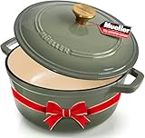 MUELLER HOME 6 Quart Enameled Cast Iron Dutch Oven For Sourdough Bread Baking, Heavy-Duty, Oven-Safe up to 500° F & Across All Cooktops, Casserole Dishes, Green Kitchen Accessories, Thyme Green $52.99 with free shipping